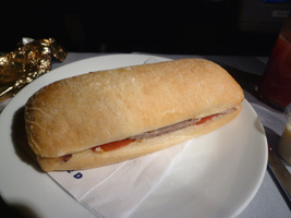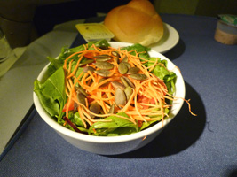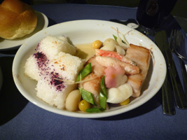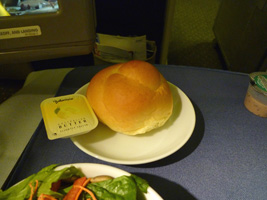 | BKK線と同じく日本行きは2食出ます。メニューは前回と同じでもパンが違いますな。 |