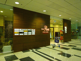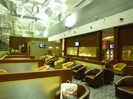 | 何事もなくシンガポールに到着し、到着ロビーで一応使えるラウンジをチェック。でもここはガラス張りで中が全部見えちゃうぞ。檻みてぇ〜だな。 |