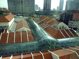 | 一夜明け、外を眺める。なるほど、ブギスジャンクションと繋がっているんですな。今回は朝食付きのプランなので朝食を頂きます。お年寄りは海外の旅の朝食はホテルでするものなのです。 |