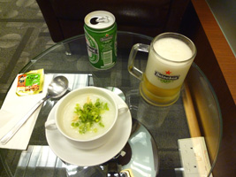| チェックインでは埋まっちゃってるのよ。ゲートでね。と言うことで嫌いなラウンジでやけ酒を飲みながら搭乗を待ちます。 |