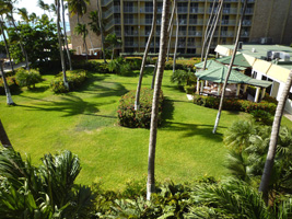 | ラナイに出ると無料電波が確保出来ますな。ほどぼそだけどね。今日はキオスクでビールでも買ってきて写真の整理でもしながらのんびりしよう。が、仕事になってしまった。 |