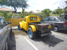 | 一夜明け、車で島を一周してみましょう。 ホテルのパーキングにまるで自分が求めていたかのような車があります。これってカスタム?エンブレムもなにもないぞ。これほしぃな〜。 |