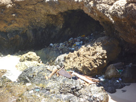| ナチュラルブリッジまでは途中から鋪装とサンゴの上の砂地が交互に続きます。これなら一般車でも大丈夫。ふぅ〜んこんなものか。ゴミぐらい片付けろよな。後で地図を見たらもう一ケ所あるみたいだな。 |