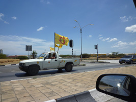 | 今回泊まっているパルムビーチとは島の反対側のサンニコラスの方へサンタクルーズを通って行ってみましょう。途中で路線バスの後ろに付いたのだが追いつけん。バスは110km/hぐらい出してるぞ。そもそもここの奴らみんなガンガンに飛ばす。観光できょろきょろなんかしてられんぞ。所々派手な旗振りが居たのだが選挙真っ盛りのようである。 街には....ほぼ何も無ぇ〜。人が居る居ないの問題ではなく、な〜んも無いって感じ。その後は色々ぐるぐる廻ったがたいして何もないな〜と島内ドライブが終ったのでした。 |