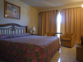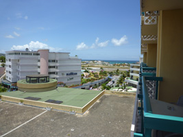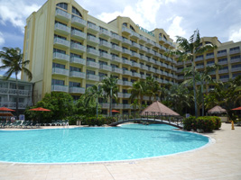 今回も前回と同じHoliday Inn SunSpree Resort ARUBA-BEACH RESORT & CASINOです。前回はロビーから遠かったけどオーシャンフロント。今回はロビーから近いけど普通の部屋。前の方が良かったなぁ〜。何時ものことだが初めての時は良い思いをさせておいて、二回目からはぞんざいな対応になるのね。 |