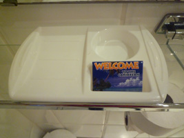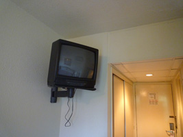 | 部屋にWi-Fiは無い。LANは来ているのだが登録ではじかれる。フロントに聞いたらロビーのWi-Fiを使ってくれとのこと。パスワードを書いた紙を渡されたのだが、1パスワードに付き一つのMacアドレスが使えるようだ。同時にiPhone3Gで繋ごうとしたら「1台しかあきまへんで」とおしかりを受けた。 |