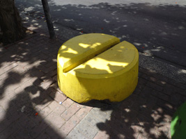 | 他には....なんか汚い旧軽伊沢みたいな通りがブリードストリート。ここがオトロバンダのメインストリートなんだな。ここでもどいつもこいつぷらぷらだらだらしている。典型的な土産物屋やたいしたものが無さそうな洋服屋がある。しかし、服屋は意外と賑わっている。道端には画像のようなカラフルなすけべ椅子が置いてあってここが憩いの場らしい。 |