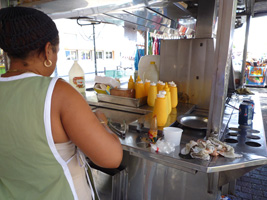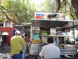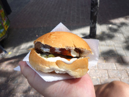 | あとは別に何もないかな。プンダに戻り、昨日大人気だったホットドック屋でハンバーガーを注文。ハンバーガーとコーラで400円位か。安いわけではないな。 |