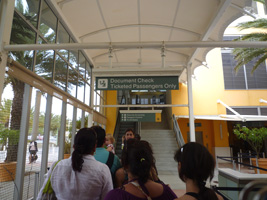 早朝の空港で車を返してチェックイン。出国するに当り$34.25も取られます。去年も取られたかな〜。 |