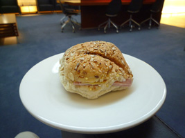 | CURにも小さなラウンジがあります。ソフトドリンクとワインは無料。 |