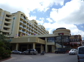 | これにてセントマーティンでのイベントも終了。そうそう、ホテルの周りもご紹介しておきましょう。ホテルは一般ゲスト用とタイムシェアに分かれていますね。ホテル前の通りは一応アーケードになっていますが寂しい感じ。ホテルの目の前にちょっと大きめのカジノがあると。 |