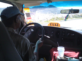 | 朝9時半にホテル出発。乗り込んだタクシーは14人乗り....バスだな....。フィリップスバーグに到着したのは1時間後。この時間でもかなり渋滞である。 ヒルクライム中の |