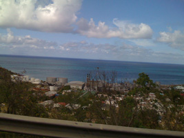 | 走って分った渋滞の原因。 ◆そもそも一車線である。 ◆そもそも道が奇麗ではない。 ◆マホビーチからフィリップスバーグへはルートが一つしかない。 ◆山越えなので全体的に速度が落ちる。 ◆そもそも人類が暢気である。 と言うことで、朝晩のまだ空いているであろう時間帯でも往復2時間はかかることが判明。 |