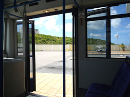 | そこいらの空港ホテルより近そうなホテルなのだが、荒れた一般道しかないので仕方なく車で行くしかないのだが、タクシーだと$10かかる。バス(乗合バス)があるのだが何時出発するか分らないようだ。ということでタクシーで空港へ。 | |