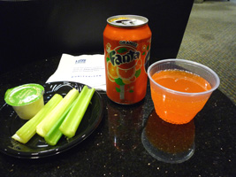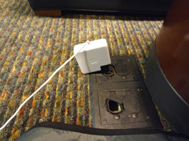 | IADに到着してRCCで野菜をポリポリします。電源アダプターのL字プラグがこんなところでも役に立ちました。 | |