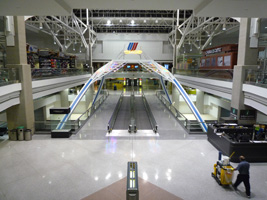 | 巨大空港もがらがら〜。飲み物が販売機で買える程度です。 | |