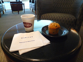 LAXでは時間が4時間ほどあります。お〜そ〜だそ〜だ、ターミナル6のCOのラウンジに行ってみましょう。昔、喫煙所があったところの向かいにひっそりとあります。LASもそうだがCOのPresidents Clubってのは入口が気が付かないようにあるな。一瞬見ると通用口だもんな。 |