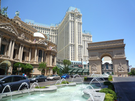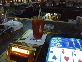 | 今回のホテルはParisです。ストリップに出るならParisでカジノにいるならBally'sって感じだな。Bally'sの方が部屋が広いからいいかな? 朝9時に到着したもんだから「チェックインで11時からよシッシ、荷物預けて遊んでらっしゃいシッシ」というこで荷物はまだ届かないので仕方なくカジノのバーでぺちぺち。 |