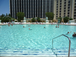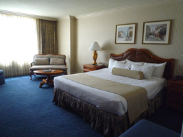 チェックイン可能時刻とともにチェックイン完了。低層の部屋ですな。低層の部屋で不便なことと言えばプールに行くのに一度ロビーでトランジットしないと行けないことです。Parisのコンベンションセンターでなにやら聾唖系の方達のコンベンションがあったようで、人がいっぱいいるけど静かです。試しにコミュニケーションを試みるもやはり日本の手話とは大違いで全く通じず。「美味しかった」は通じました。 |
