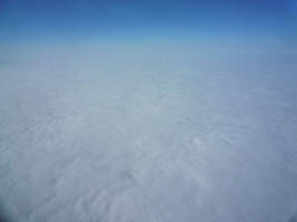 | 時間がないのでラウンジどころではない。最後の一人として搭乗。窓の外は雲だらけ〜。 |