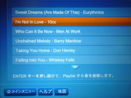 | 眠くなかったので自分専用のミュージックプレイリストを作って遊んでいたわよ。 到着前のミールの時も同じように暗闇と。ちょっと揺れていたのでぶれるぶれる。これが限界です。 |