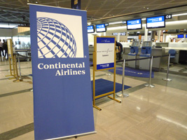 | いつものBカウンターでチェックイン。左端の方にはCOの看板が見え、カウンターではUAの職員がCOのハンドリングの訓練をしています。そのお蔭でUAのカウンターには委託会社の方が対応している。これじゃ意味が無いような気がするのだが....。 |
