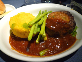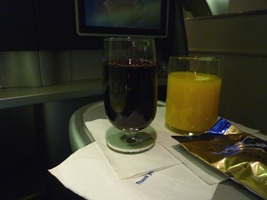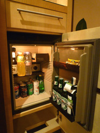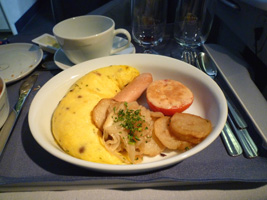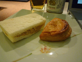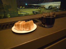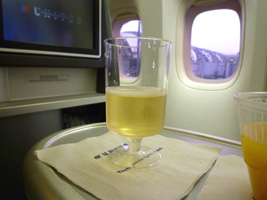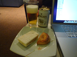 | まずはラウンジでネットに繋がないとメールがオーバフローしちゃいます。ラウンジに行くとなんと大好きなハートの目玉焼がありません。まだ時間が早いというのではなく、目玉焼が置かれるべき場所がありませ〜ん。一時的なことなら良いのだが....。こういうときはビールっしょ。 |