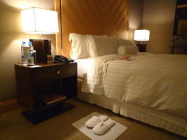 事前にExecutive Club Floorにアップグレードされていたのだな。このベッドサイドにある集中コントローラは便利なのはいいことだ。 |