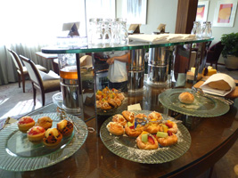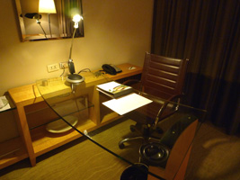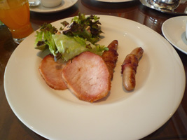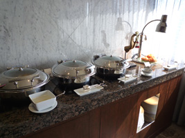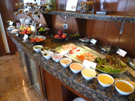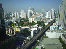 | Executive Club Floorにアップグレードされたものですからラウンジでコンチネンタル朝食が食べられます。と言っても朝食は食べられないんです。些細な肉と些細な葉っぱを頂きます。(これが毎日続く....) 部屋からはスクンビット通りが見えますな。 |