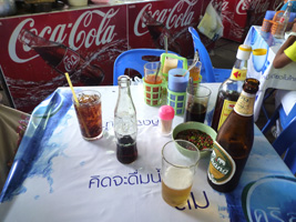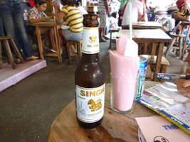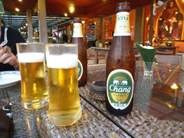 | 両替してからパイヨク方面でまずは一仕事を終え、飛んで飛んで夕方からはルンビニーのスアンルム無いとバザールに向かいます。ちと早すぎたのでビールじゃ。 |