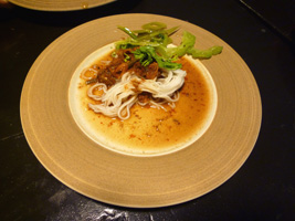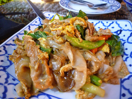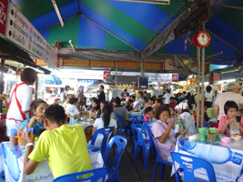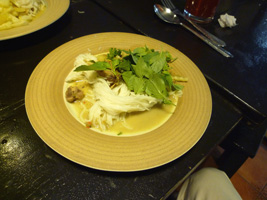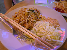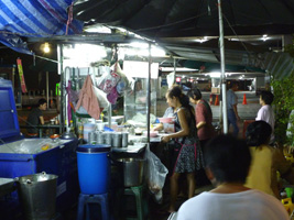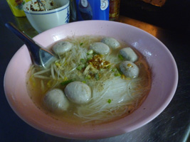 | 夜はホテル近くの汚い屋台兼食堂でぱくぱく。このバミー・ナームもなかなかあっさりしていて美味しかった。 |