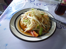 | まずはビールっしょ。このソムタムは美味しかったな。 |