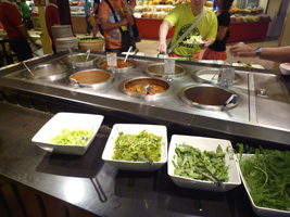 | 夜はMBKの上にあるカノムチーンへ。59バーツで食べ放題です。食べ放題だが美味くはない。 |
