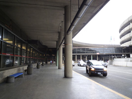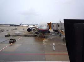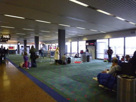 | IADに到着すると、各地からのフライトが一気に到着している時間帯なので乗り継ぎ客でごった返している。つぅか通路が狭いんだな。 |