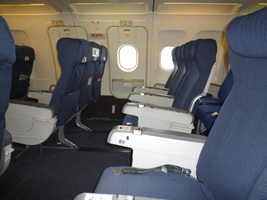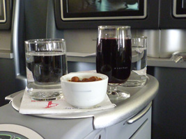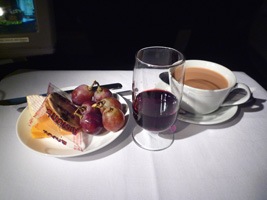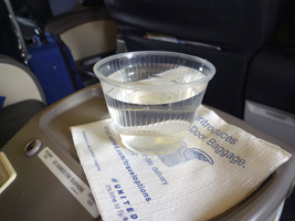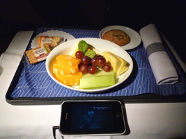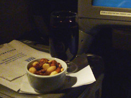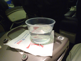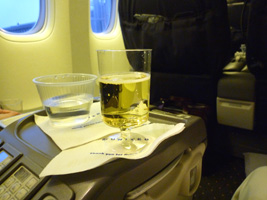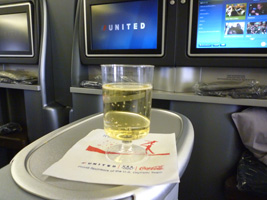 | まずはレッドアイでシカゴに向かいましょう。B777であるが国内線機材なのでいつもと変らぬファーストクラス。 |