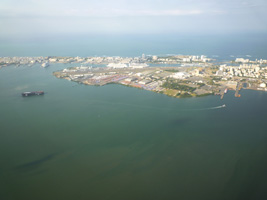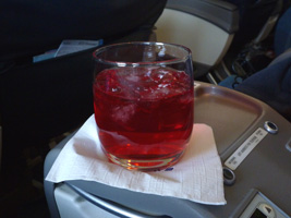 | 到着前にクランベリージュースを飲みながらっと。見えてきた見えてきましたサンファンの街が。 |