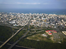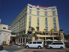 | 意外に大きな空港ですな。立派立派。空港からタクシーでホテルまで行ったのだが、このタクシー待ちが混んでたんだわ。タクシーはみんなバンタイプだな。しかし、江戸を出て44時間でやっとのことプエルトリコに到着。上陸したぞ〜。 近隣の島の都市が壊滅状態になっていることは全く感じさせないところである。空港で荷物が出るまで30分。その後タクシーの長い列に並びGetしたのは一昨年にアフガニスタンにお金のために派兵されていた軍人自慢の運ちゃん。強烈な渋滞でOld San Juanまでは1時間。でもタクシー代はフラットレートなので$20である。空港の壁に書いてあったレートは$19である。細かいことは気にしてはいけない。 |
