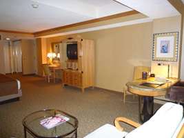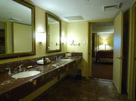 ホテルは初めての場所なので良いホテルをチョイスしたが、予約は最低の金額である。でもねでもね。スイートにアップグレードしてくれちゃった。スイートでもプレジデンシャルスイート。部屋の入り口が観音開きなのよ。 |