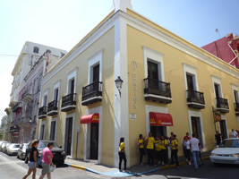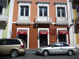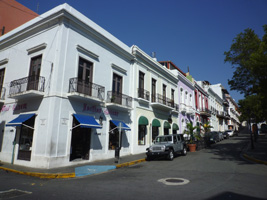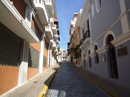 要塞は程々に街を歩きましょう。オールドサンファンの街並みはいいねぇ〜。なんと信号が無い。殆どが石畳の古い通り。建物もそのまま〜って感じよん。 |