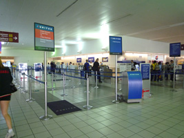 | ちんたらホテルをチェックイン。ホテルから空港までタクシーで15分。空いてます。イージーチェックインのキオスクでさくっとチェックインしてセキュリティ前に掲示板を見るとキャンセル....。慌ててUAのカウンターに戻ると「Don't worry.」はい....わかりました。 |