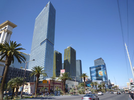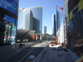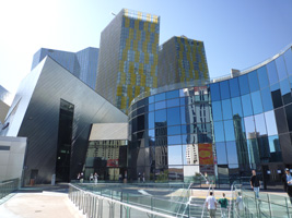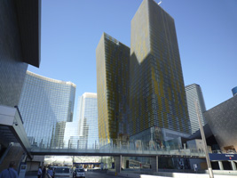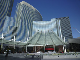 | ストリップ側にCRYSTALSというショップ群、横ちょにVEERというコンドミニアム、奥にAriaというホテル、そしてストリップ側にはマンダリンオリエンタル。本命はカジノを抱えるAriaであるが、何しろ一番奥なのでストリップからはアクセスが悪い。Planet Hollywoodの前から陸橋で渡れるのだが、これがまたストリップ特有の無駄に遠回りなんだわ。シティセンター内での移動も何処へ行くにも遠回りなんだわ。 |