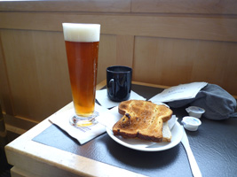 | 予約の変更をするのは既定路線だったので早めに空港に来たので暇です。日本ヘリコプターの居酒屋に行きましょう。ゲートが41なので穴蔵の居酒屋へ向かいましょう。久しぶりだな。まだ空いてますね、と思ったのつかの間。あれよあれよと混んできます。やはり中華専用航空会社だけに増えるときは一気ですな。 |