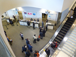 ちょっと早めにRCCを抜けだしNHの搭乗を見学に行きましょう。NHのゲート係員が11人! |