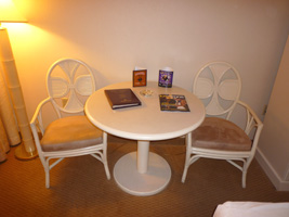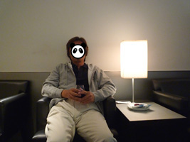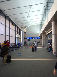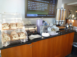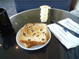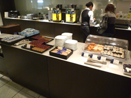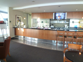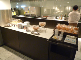 | 一気に国際線ターミナルに向かい、RCCを目指す。 隣のソファーには先客のカップルが一組。こちらを見ながら「パンなんかあるよ」「ビールもあるよ」なんて言っているが、自分で探せ!ってこっち側に来ちゃうとトースターが無いからなぁ〜がっはっは。でもあっち行くとバーカウンター無いのよ。 |