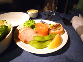 | フライト半ばは静かに眠りにつきましょう。静かに眠りから覚めると到着寸前。 |