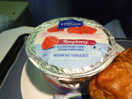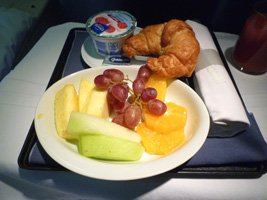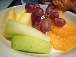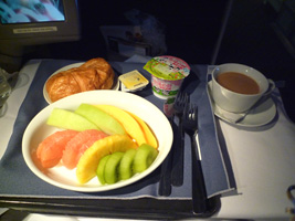 | 到着前は水菓子だな。やっぱりこのヨーグルトは美味いなぁ〜。でも最近フルーツの種類が減ってないか? |