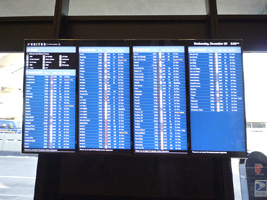| 窓の外をぼぉ〜っと眺めながらSFOに到着。やっと掲示板がUA標準になって来たな。BARTでモンゴメリーへ。 |