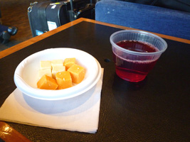 | 貧粗になったからかどうか分らないが、「フライトの半ばでのスナック」大人気。 |
