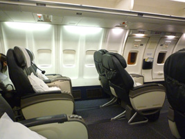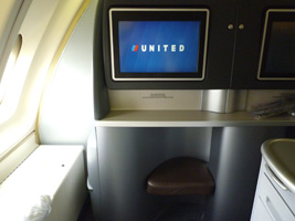 | UA837は20分遅れて出発。今回は屋根裏部屋の窓際の広いスペースを確保します。 |
