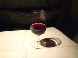 | 途中で裏のマッサージ小屋から酷いいびきが聞えてきたので移動移動。このワイングラスはRIEDELかしら?チョコうまし。 |